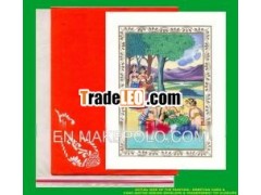 Sceneray, floral, jevenile, folk, love, eros, portrait ,ceremonial, classic, seasonal , nature, and historical about 12classified painting/ greetings are available . Some of them evenwith 24k gold foil worked.Suitable for Art galler, museum shops,crafts fairs , exhibition sales.